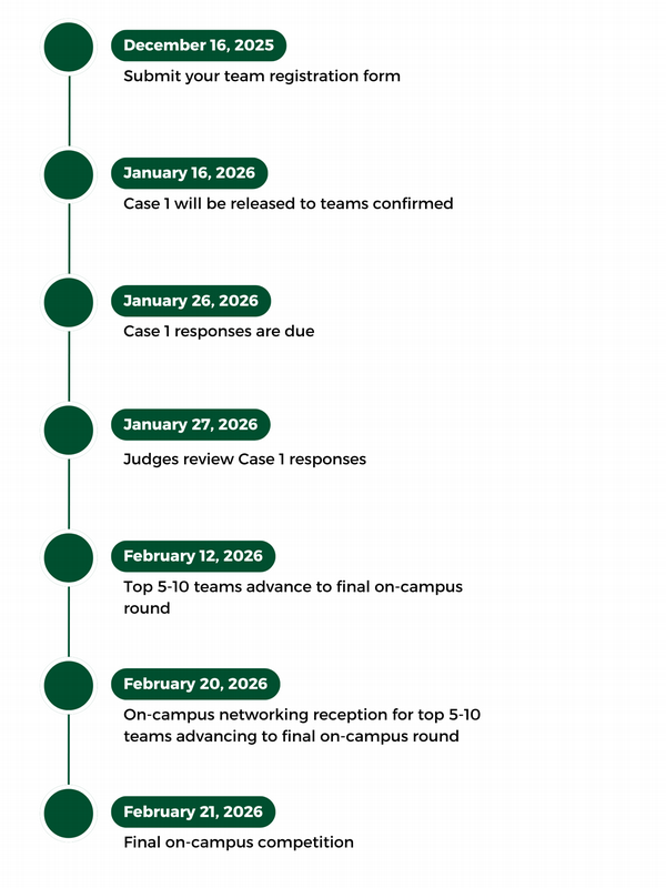 - Must agree to abide by all competition rules and regulations, including the use of proprietary case materials and data.